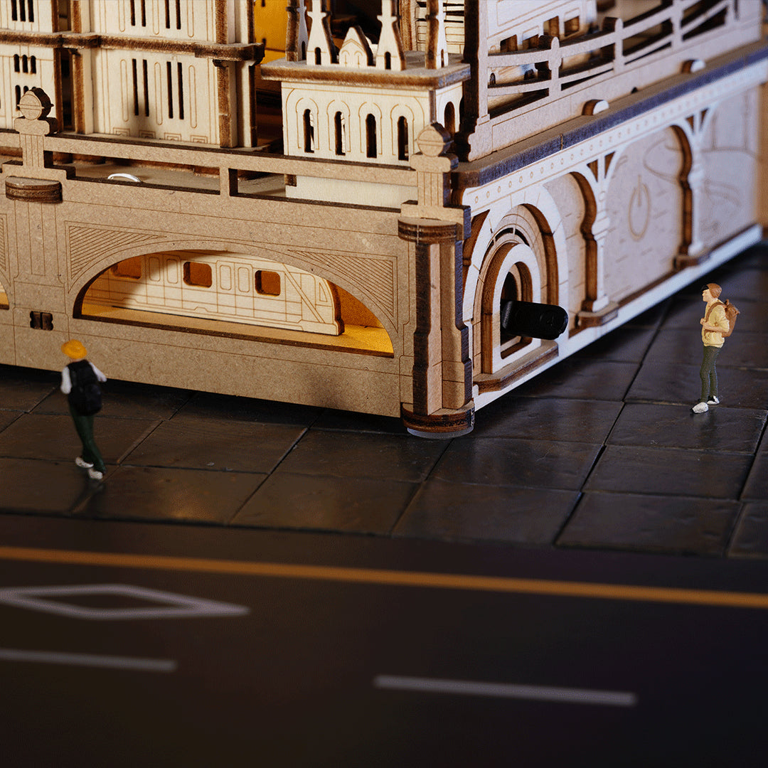 Préparez-vous à un tour éclair de la capitale britannique sans quitter votre chambre grâce à cette merveille mécanique dissimulée sous la forme d'un puzzle 3D en bois interactif. Partez à la découverte des monuments emblématiques grâce à une ingénierie de précision et à des versions miniatures de Big Ben, du Tower Bridge et du London Eye. Traversez la Tamise, montez à bord d'un bus à impériale ou prenez le métro et atteignez votre destination en un clin d'œil, tandis que des sphères métalliques filent à travers rampes et tunnels grâce à la gravité et à un moteur robuste.